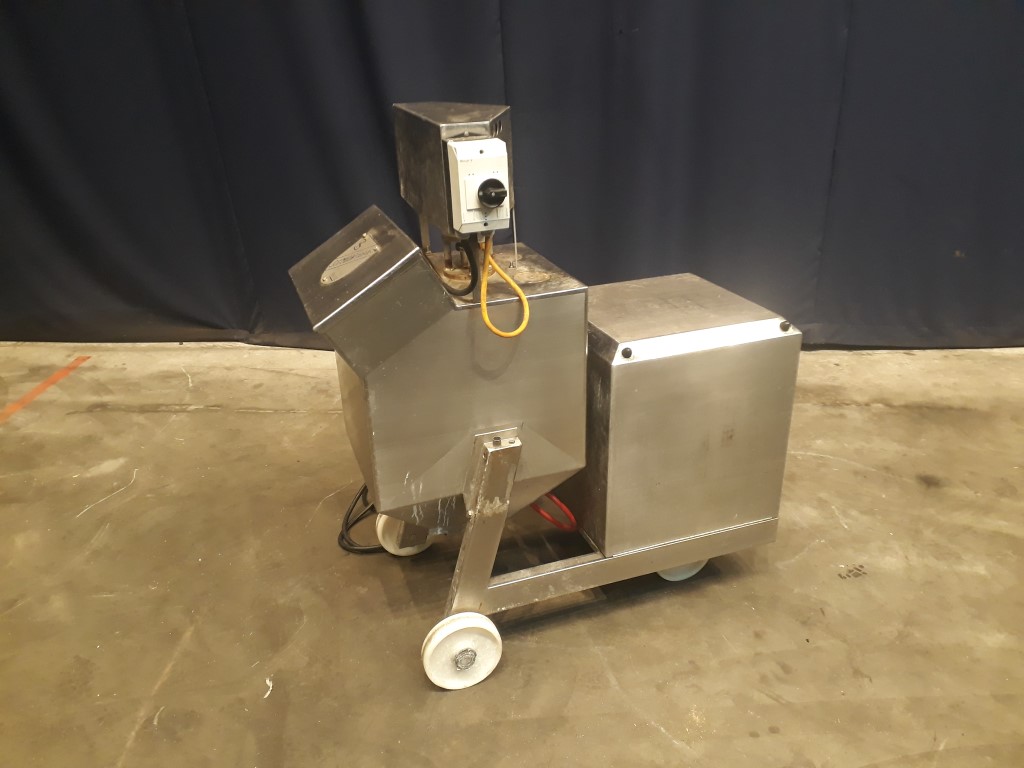 Salting device for the production of salted butter. Brine mixer and doser. Mixing tank 120 liter with heating device, thermostat and propellor agitator. Mixer motor: 0,75 kW - 1,93 A - 1395 rpm. Without dosing pump. Mobile mounted.