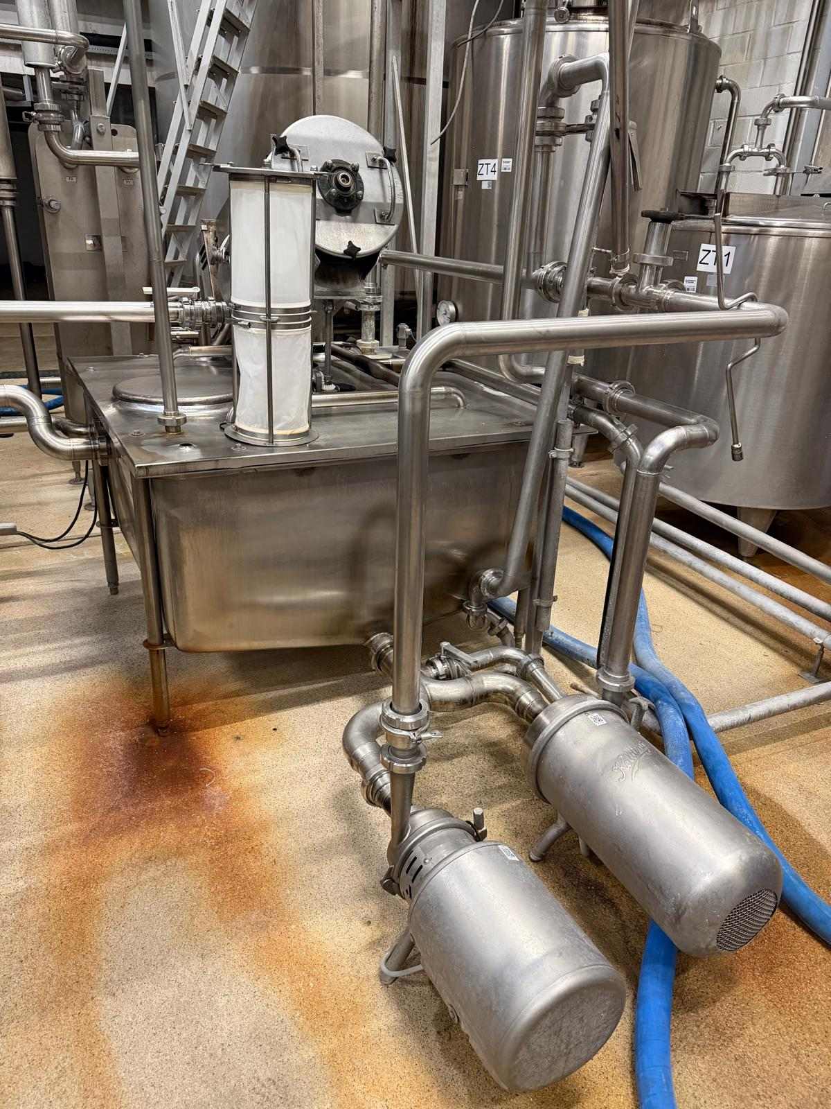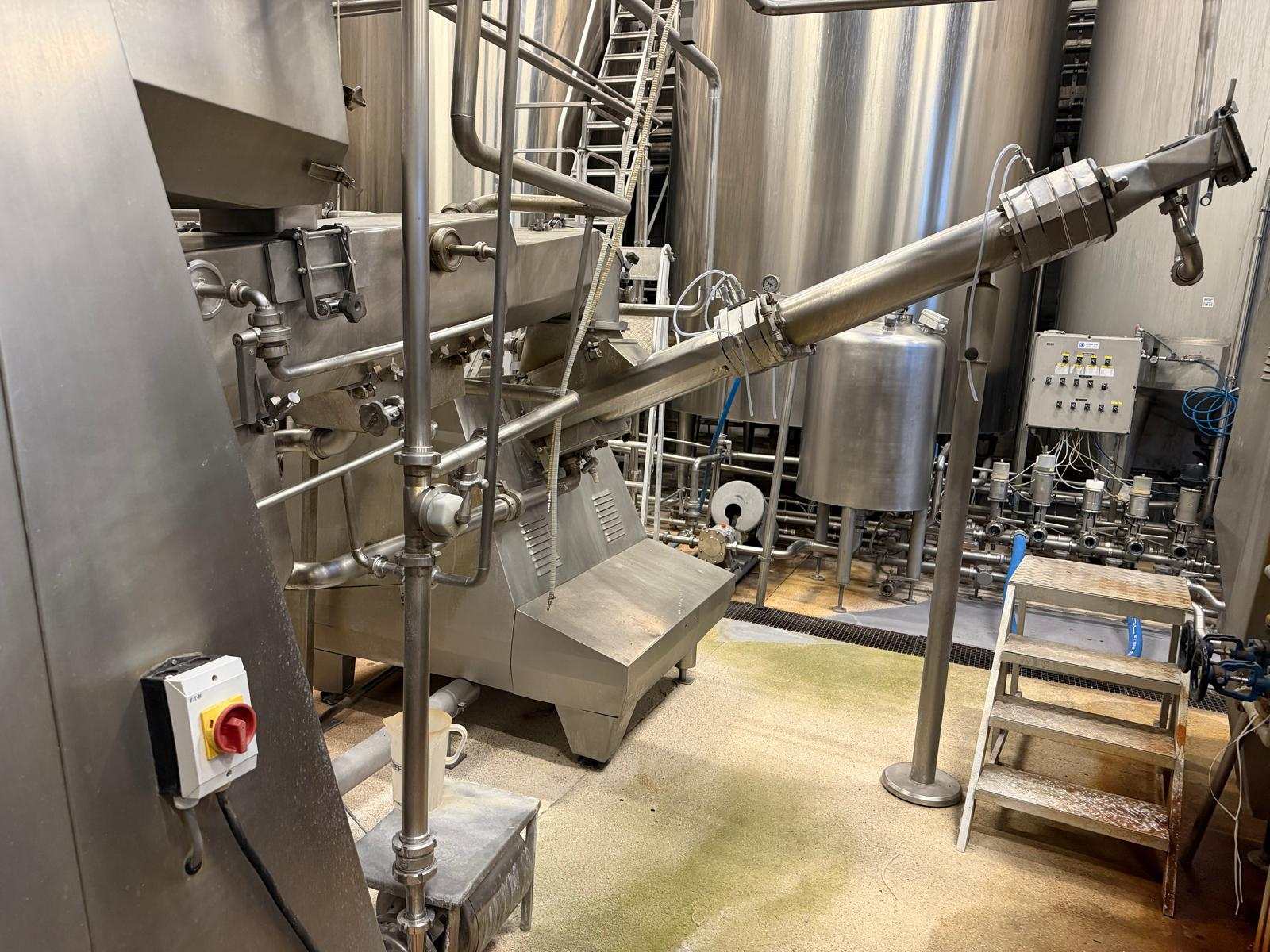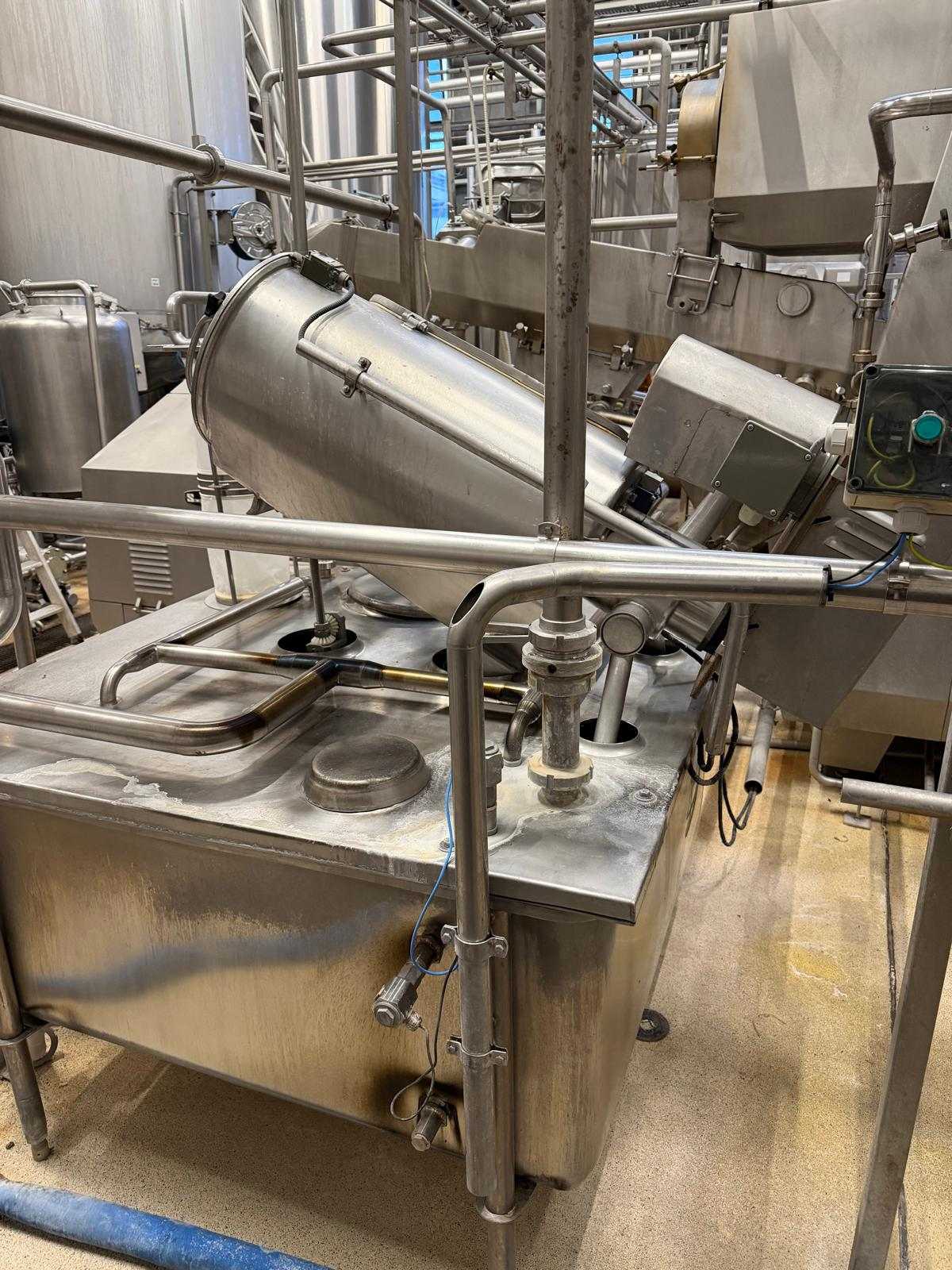 Complete continous butter production line (CBM). Operating principle of the production line: the cream pump transports the cream from the buffer tanks to the CBM. The CBM is capable of converting 4.000 liters of cream into 2.000 kg of butter. It also features a butter milk cooling and a vacuum section, and injection pumps for culture and water or brine. Furthermore, it includes all needed buttermilk components: CIP pumps, a collection tank, valves, piping, and all the necessary controls. After the butter is made in the CBM, it is pumped into the Simon freres butter silo, which includes 2 Waukesha outlet pumps to transport the butter to the filling machines. Documentation available.