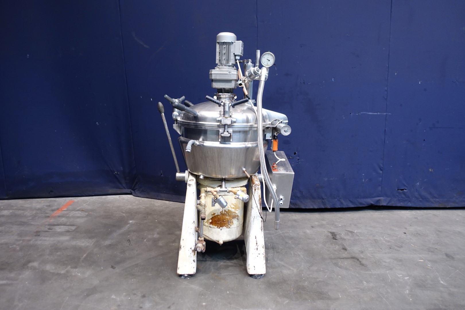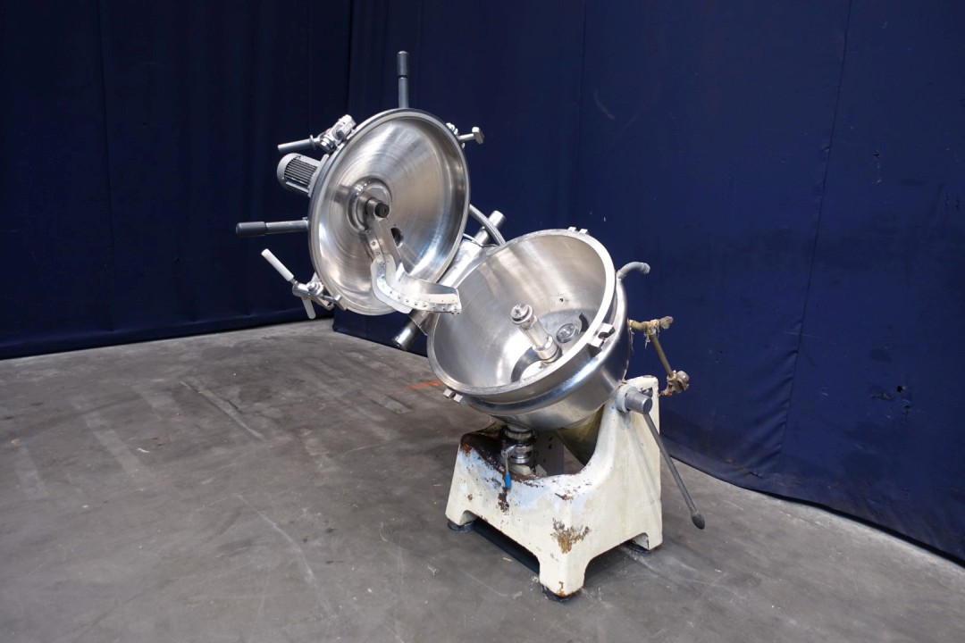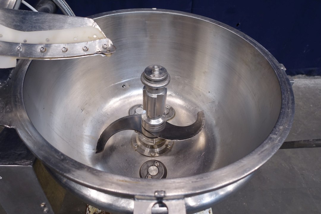 Universal Vertical cutter/melter/cooker with vacuum system, the main product bowl is double jacketed for cooling or heating and has 3 built in ports for injecting steam directly into the bowl. PT-100 sensor in the bowl. Manual lid opening top. The main lid has 3 manual tightening clamps. 2 agitators: 1 scraper agitator (25 rpm) and 1 mixer / homogenize knife, main motor 15/18,5 kW, 1500-3000 rpm. Included extra main motor. With documentation (operationel manual and spare parts list) . Excluding: vacuum pomp.
