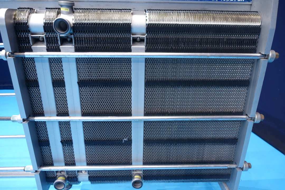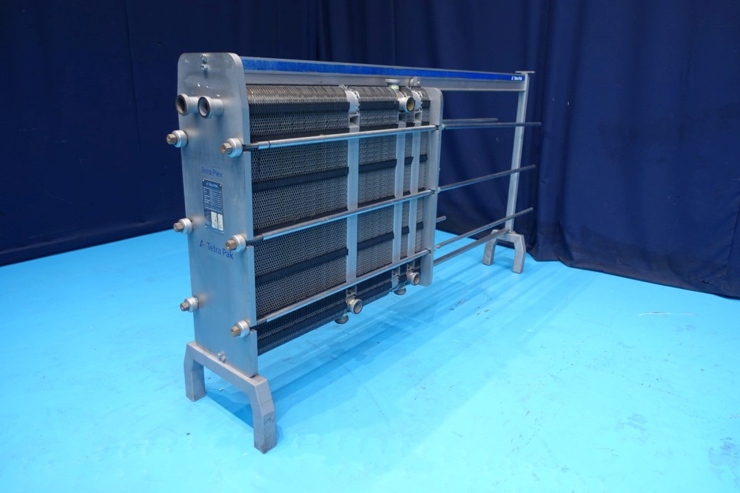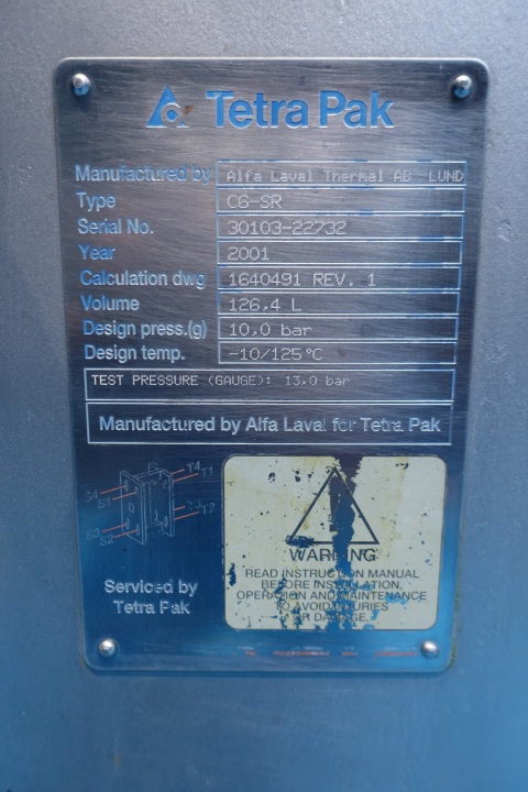 Plate heat exchanger, sanitary (PHE). Dessign pressure: 10,0 bar. Beam length: 240 cm, connections: 16x 2" SMS. Current configuration: 4 Sections: 108-50-10-10 plates, total 178 plates. Connections head: 2 up, follower 2 up. can be used as pasteuriser Total dimensions: 251x37x140 (lxwxh) cm - weight: 598 kg.
