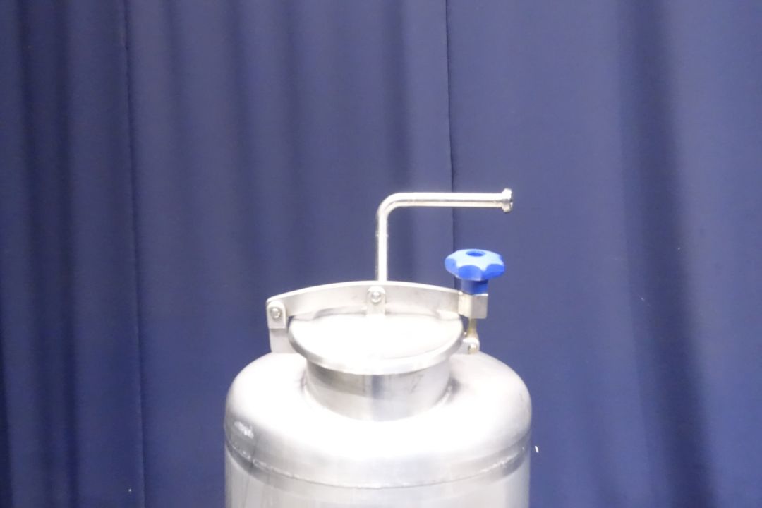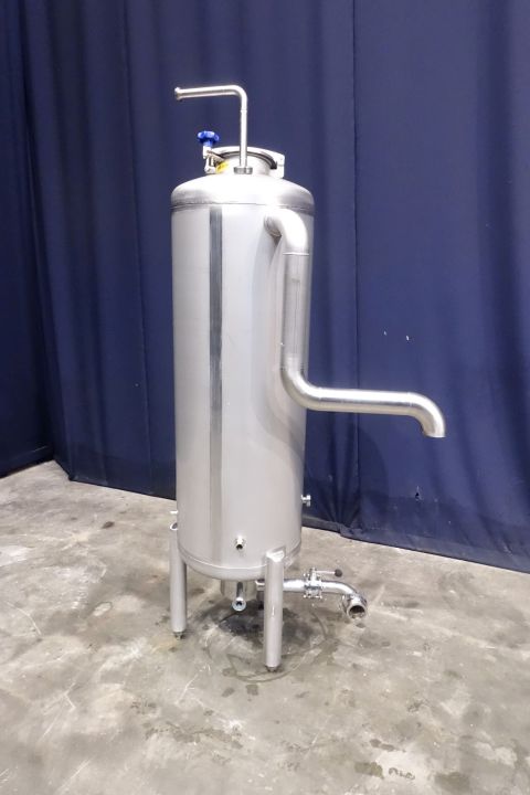 Closed leveltank with manhole in the top. Bottom floor outlet with manual butterfly valve. 3 feet. Pressure: ATM. Temperature: 20 °C. Total dimensions: 110 x 70 x 210 cm.