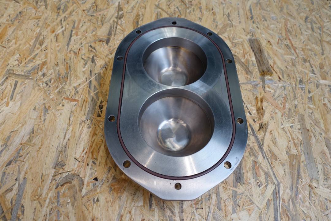 Lobbe pump with duo stainless steel lobbes (twin wing). Diameter lobbes: 215 mm. Displacement per revolution: 1,438 ltr. Nominal capacity 52,5 m3/h. Design pressure up to 31 bar. Flushed seal. Connections: (in) 3'' / (out) 3'' SMS. Currently without drivework. Dimensions: 60x36x49 (lxwxh) cm, weight: 261 kg's.