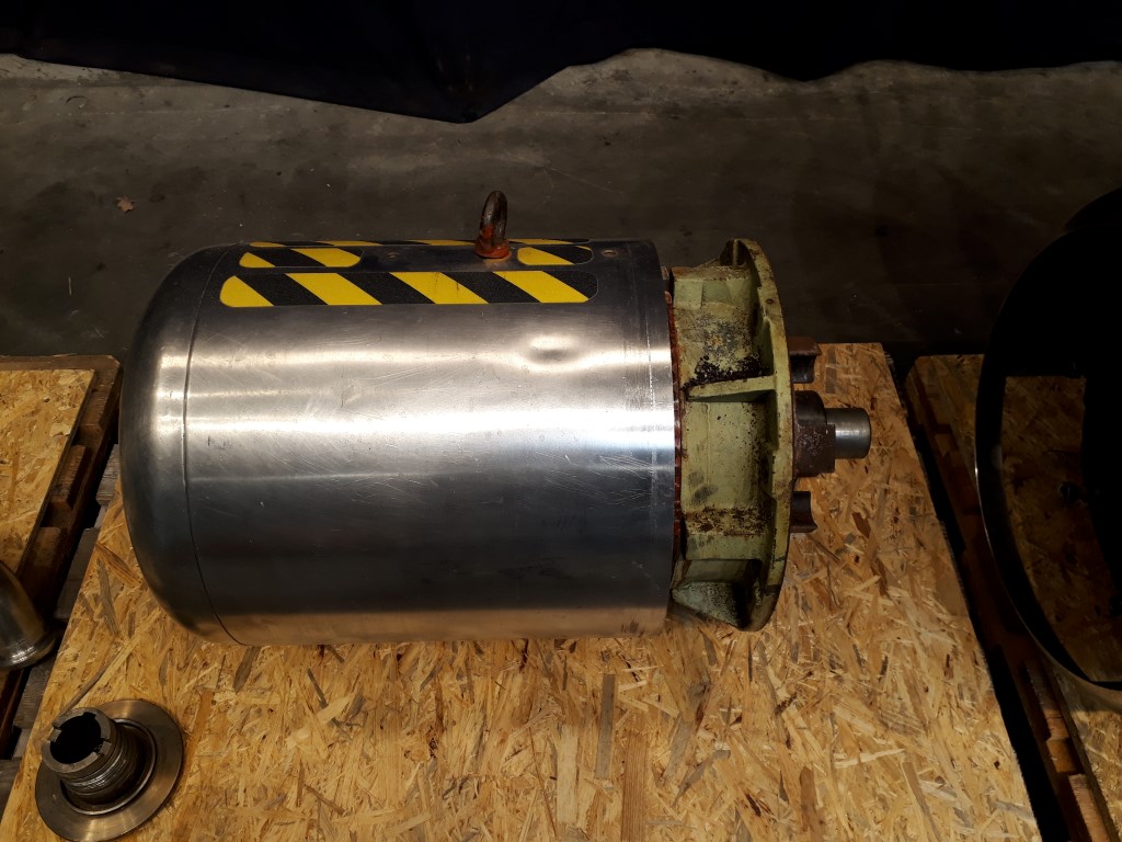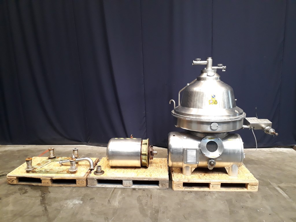 Incomplete bactofuge, excluding bowl. Including: Motor 37 kW - 72 A - 1475 rpm, motor cover, base frame, manouvering water valves, centripetal pump for concentrate. Excluding: Bowl, inlet/oulet pipe, centripetal pump bactofugat, sludge collecting tank, counter pressure valve milk, flowindicator and flow regulation valve for bactofugat, fluid clutch, tools and controls. for parts only.