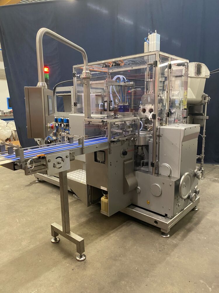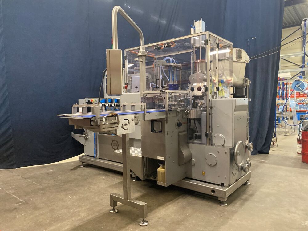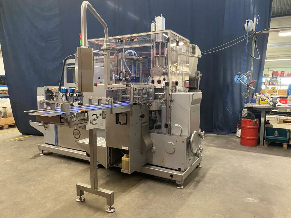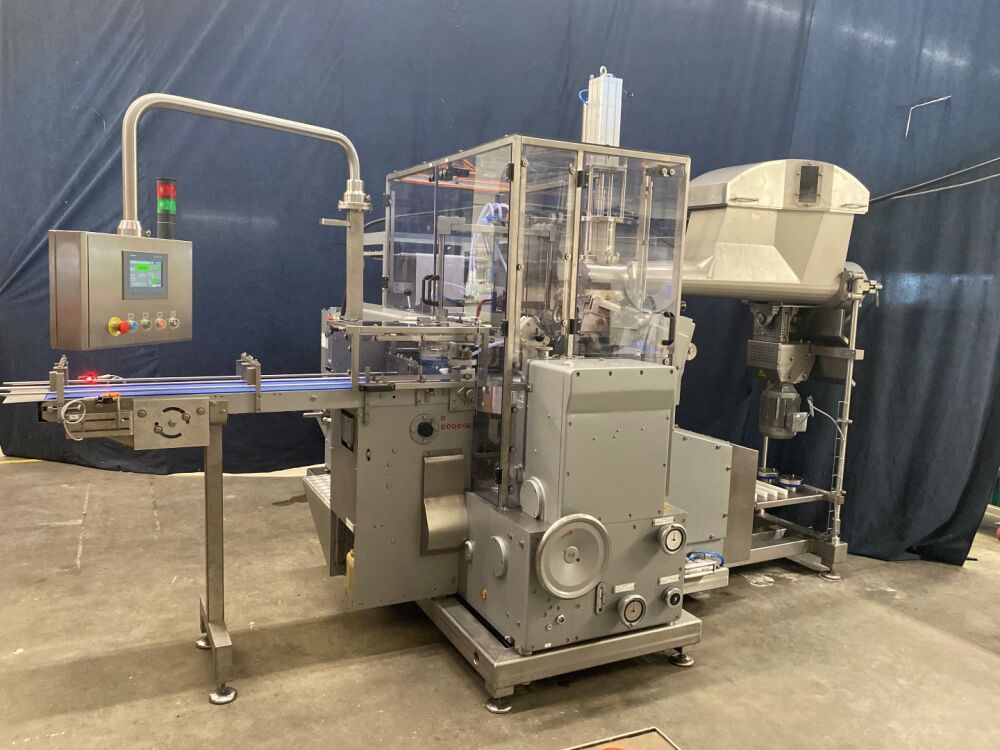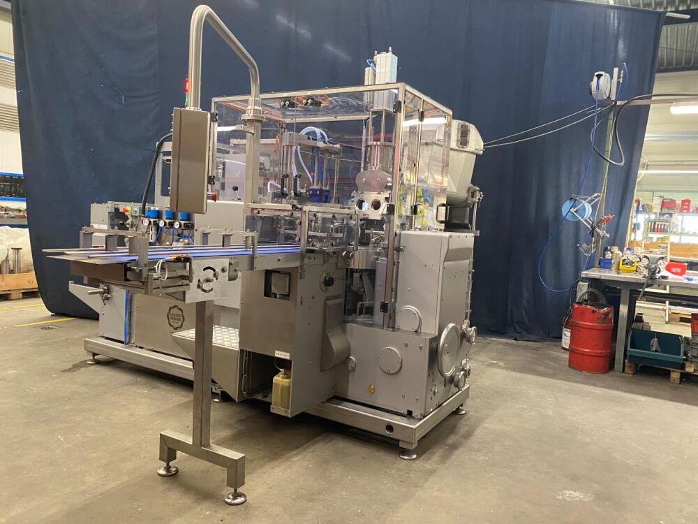 Benhil 8362 Multipack reconditionnée pour conditionnement / emballage automatiques du beurre, dotée d'un nouveau panneau électronique, avec régulation de fréquence. Machine 100% mécanique, pas de système hydraulique, système électronique, système pneumatique ou timers. Centrage de la feuille par détection photoélectrique de la feuille pré-imprimée. Système de graissage automatique Connexion directe pour l'alimentation en produit.